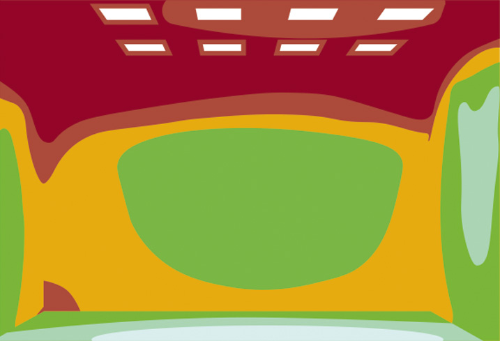 After start-up, the treatment room is uniformly artificially illuminated by the lighting system.